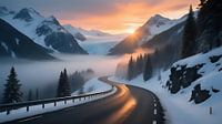 Die Szene zeigt eine leere Asphaltstraße, die sich sanft durch eine beeindruckende Berglandschaft schlängelt. An beiden Seiten der Straße erheben sich majestätische Gipfel, deren Spitzen von vergänglichem Schnee bedeckt sind. Diese Erhebung lässt die beeindruckende Höhe und die zerklüftete Beschaffenheit der Berge deutlich erkennen. Im…