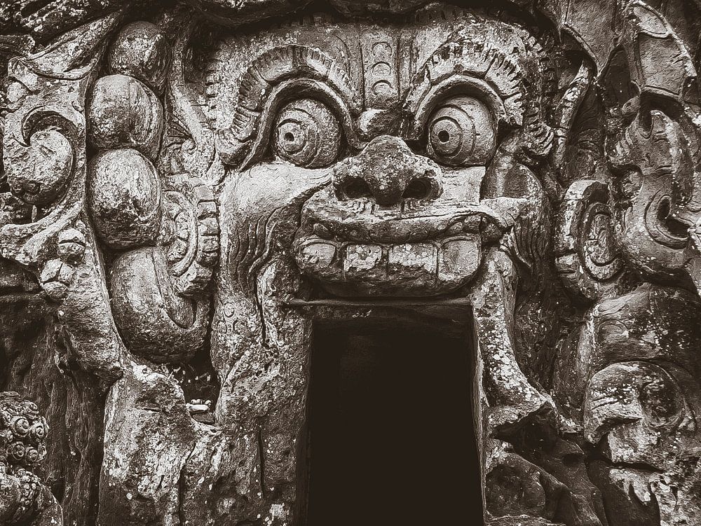 Woher der Name „Elefantenhöhle“ für das Heiligtum stammt, weiss keiner so genau. Es könnte eine Missinterpretation des gigantischen Reliefs am Eingang der Höhle sein, weil die Seiten als große Ohren = Elefant :) angesehen wurde. Allerdings gab es damals auf Bali keine Elefanten, diese wurden erst viel später als Touristenattraktion eingeführt.