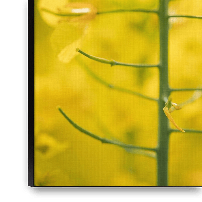 Diese sonnenbeschienene Nahaufnahme eines blühenden Rapses strahlt pure Lebensfreude aus. Die Fülle der gelben Blütenblätter ist in Licht getaucht und lässt die gesamte Komposition wie ein goldenes Feld in voller Blüte erstrahlen. Die vertikalen Linien des Stängels verleihen dem Bild Ruhe und Ausgewogenheit, während die zarten Blüten…