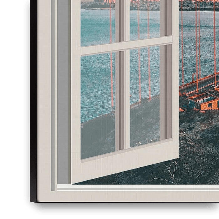 Ihre gewählte Kunst auf Leinwand, gespannt in einem Aluminiumrahmen. Schnell und einfach austauschbar für eine frische Ausstrahlung und ganz nach Ihren Wünschen.