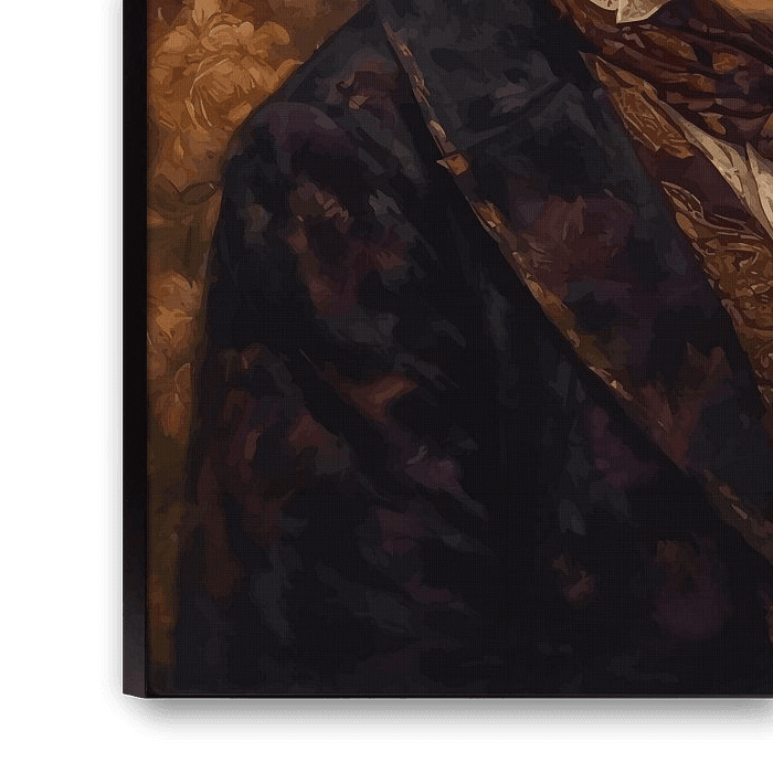 Der Golden Retriever strahlt Wärme und Optimismus aus in diesem bezaubernden viktorianischen Porträt, das wunderschön gemalt ist und voller herzlicher Nostalgie steckt. Sein Ausdruck strahlt Freundlichkeit aus - die sanfte Seele, die Trost und Freude in jedes Heim bringt, das das Glück hat, von seiner Anwesenheit beglückt zu werden. Die Künstlerin fängt diesen emotionalen Charme durch weiche Überblendungen, subtile Beleuchtung und atmosphärische Töne ein, die den Retriever zu einem Symbol der Liebe und Treue erheben. Eine ruhige Brise klassischer Romantik durchströmt die Komposition und lässt sie wie eine kostbare Erinnerung wirken, die auf der Leinwand zum Leben erweckt wurde. Trotz des Vintage-Themas wirkt der Geist des Retrievers frisch und brillant lebendig, wobei jeder Pinselstrich das verspielte Herz und die edle Kameradschaft der Rasse ehrt. Dieses Kunstwerk wird bei Sammlern, die ein Porträt suchen, das einen Raum nicht nur schmückt, sondern auch wärmt, auf große Resonanz stoßen. Es ruft Lächeln, Frieden und emotionale Verbundenheit durch zeitlose Schönheit und die universelle Bewunderung für eine wahrhaft geliebte Rasse hervor.