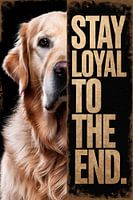Dieses kraftvolle Design stellt die Loyalität eines treuen Begleiters, eines Golden Retrievers, wunderschön dar. Das Bild zeigt den Hund auf realistische Weise, wobei sein weiches, goldenes Fell im Detail zu sehen ist. Die begleitende Botschaft Stay loyal to the end unterstreicht die tiefe Bindung zwischen Mensch und Tier. Dieses…