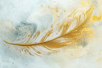 Bestelle dieses abstrakte Wandbild Goldene Feder mit marmoriertem Hintergrund von Imperial Art House als Reproduktion auf Leinwand, Alu-Dibond, als Poster, Fototapete oder Acrylglasbild.