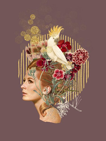 Bestelle dieses Blumen-Wandbild Goldene Präsenz von collagesdemarie als Reproduktion auf Leinwand, Alu-Dibond, als Poster, Fototapete oder Acrylglasbild.