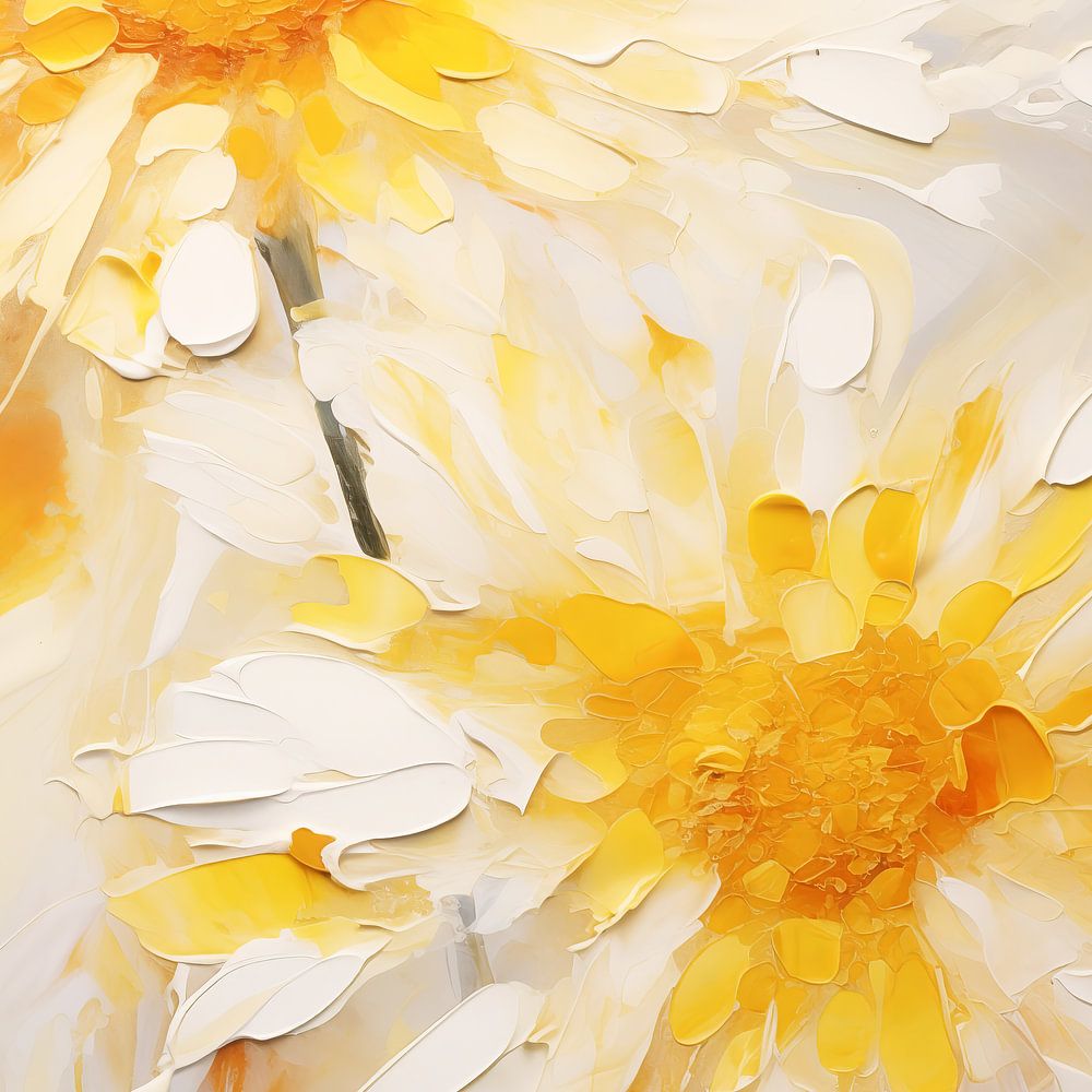 "Golden Sunbeams" präsentiert einen berauschenden Tanz von Gänseblümchen, die in das sanfte Licht der Sommersonne getaucht sind. Die Lebendigkeit der gelben und weißen Farbtöne schafft eine visuelle Symphonie, die eine Ode an die Wärme und Energie des Lebens ist. Die Gänseblümchen scheinen in einem magischen Moment gefangen zu sein, denn jedes Blütenblatt wird von den Sonnenstrahlen beleuchtet und erstrahlt in einem fast ätherischen Glanz.