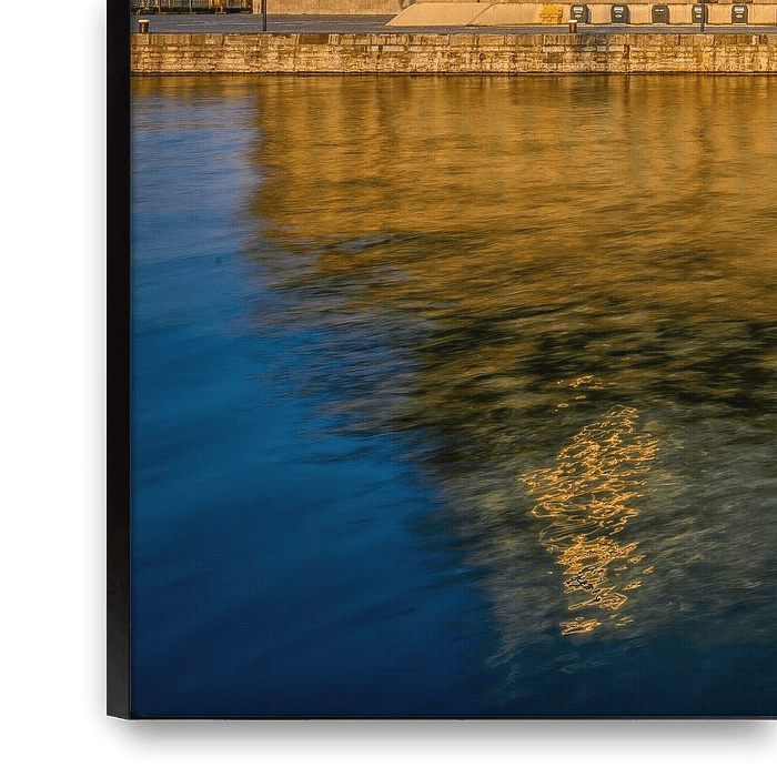 Ihre gewählte Kunst auf Leinwand, gespannt in einem Aluminiumrahmen. Schnell und einfach austauschbar für eine frische Ausstrahlung und ganz nach Ihren Wünschen.
