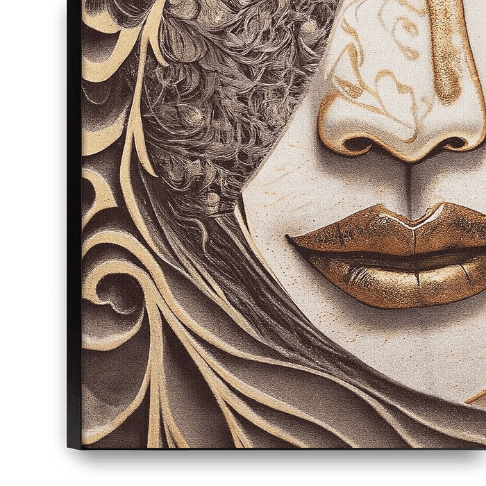 Darf ich vorstellen: "Golden Infatuation", ein sanftes weibliches Gesicht, das goldene Akzente setzt. Sie ist in Gedanken versunken, verliebt und träumt von ihrem Geliebten. Dieses Porträt verkörpert die Kraft der Liebe und ist eine wahre Schönheit, die es zu betrachten gilt.