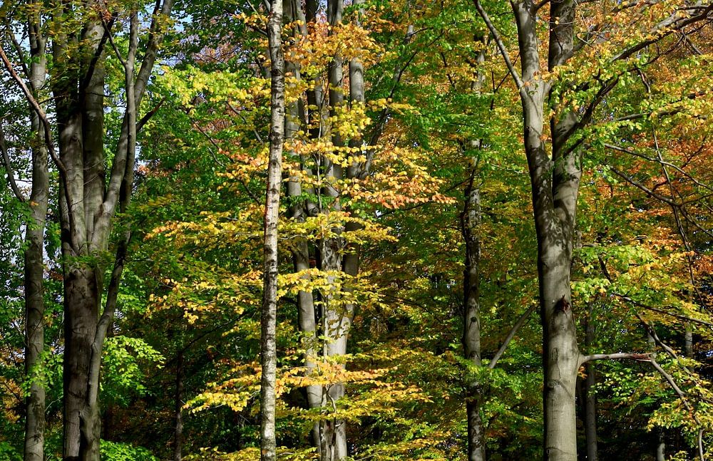 Der Wald leuchtet in schönen Farben im Oktober
