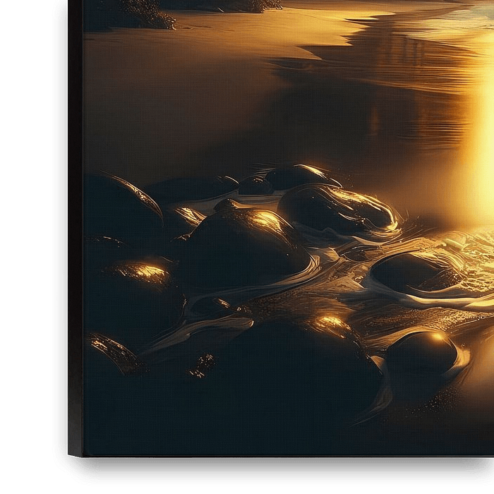 Das Kunstbild "Goldener Strand" entführt dich an einen malerischen Ort, an dem das warme Licht des Sonnenuntergangs den Himmel und den Sand in ein sanftes Gold taucht. Wellen rollen ruhig an den Strand, während die Sonne am Horizont verschwindet und eine Atmosphäre der Ruhe und Gelassenheit erschafft. Dieses Bild fängt die Magie eines…