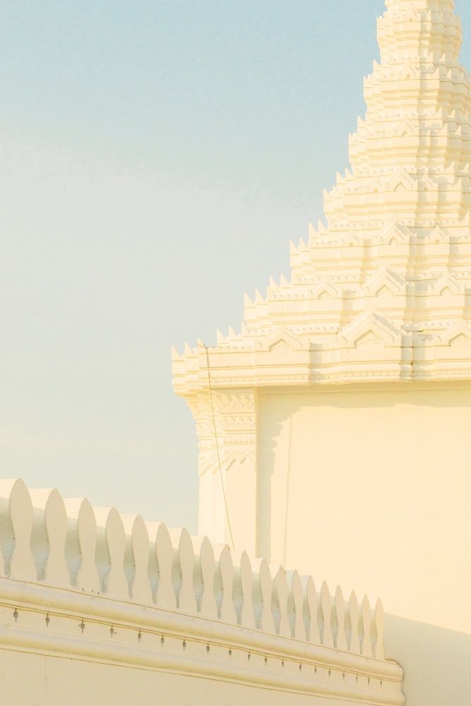 Dieses stimmungsvolle Foto zeigt die strahlend weiße Mauer und den kunstvoll verzierten Turm des Großen Palastes in Bangkok, eingefangen im sanften Licht des frühen Morgens. Die klare Linienführung, das frische Grün des Rasens und der blaue Himmel bilden eine harmonische Komposition, die die Schönheit traditioneller thai-buddhistischer Architektur unterstreicht. Dieses Bild fängt nicht nur die majestätische Ruhe des Ortes ein, sondern auch den kulturellen Reichtum Thailands. Ideal für alle, die Kunst, Architekturfotografie oder asiatische Kultur lieben – ein perfekter Blickfang für Wohnzimmer, Büro oder Galerie.