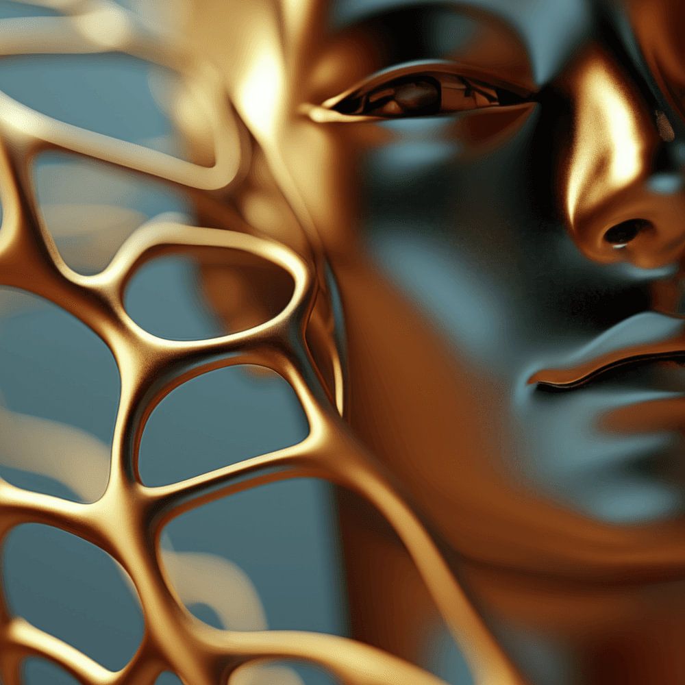 In de betoverende rijkdom van deze met AI vervaardigde kunstwerken openbaart zich een magisch schouwspel van menselijke vormen die transformeren tot abstracte gedaantes, verstrengeld met weelderige, organische gouden zwierige vormen. Elk kunstwerk lijkt een verhaal te vertellen dat dieper reikt dan de oppervlakte, waarbij de toeschouwer wordt uitgenodigd om de grenzen van de verbeelding te verkennen.