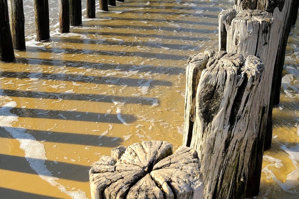 Domburg is een stad in de gemeente Veere, in de Nederlandse provincie Zeeland. Het is gelegen aan de westkust van het voormalige eiland Walcheren en is de op twee na oudste badplaats van het land. Deze palen op het strand zijn golfbrekers. Ze zorgen ervoor dat de golven uit de noordzee de duinen niet stukslaan.Nederlandse beeldbank en stockfotografie