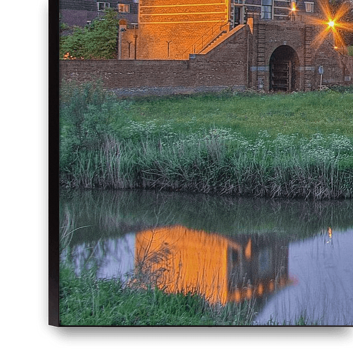 Bestelle das Foto Gorinchem Dalems Poortje und Windmühle de hoop von Rens Marskamp als Reproduktion auf Leinwand, Alu-Dibond, als Poster, Fototapete oder Acrylglasbild.