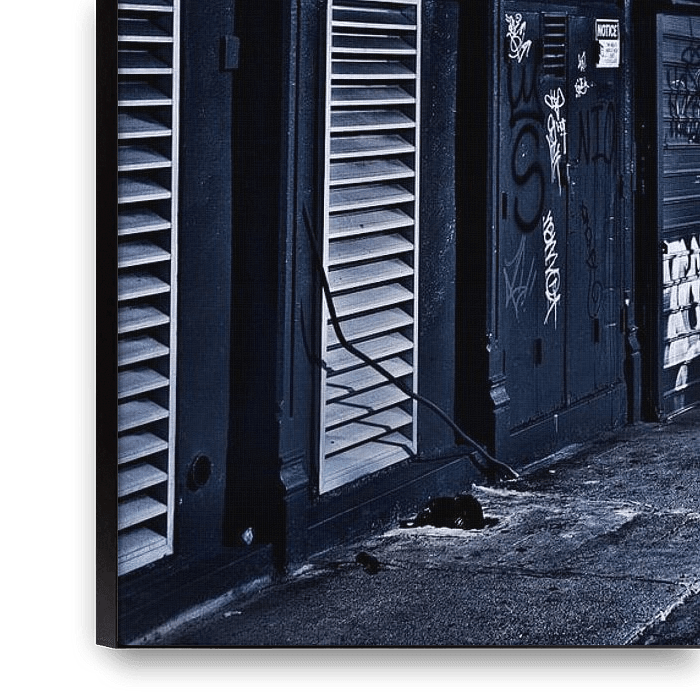 Bestelle das digitale Kunst Bild Gotham City - A Cinematic Impression Of Cortlandt Alley von Nico Geerlings als Reproduktion auf Leinwand, Alu-Dibond, als Poster, Fototapete oder Acrylglasbild.