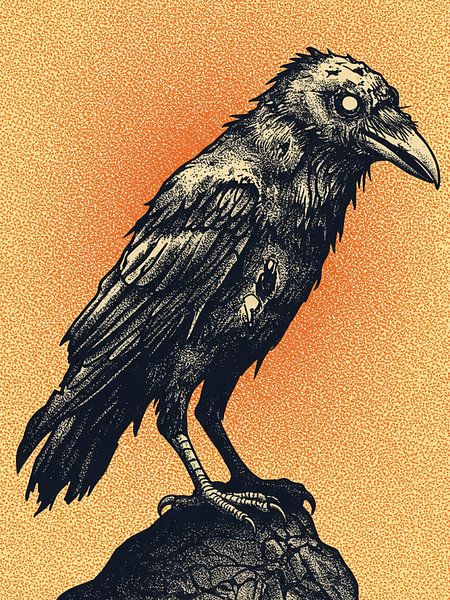 Dieses Gothic-Raben-Kunstwerk zeigt einen detaillierten, dunklen Vogel, der sich von einem gedämpften pfirsich-orangen Hintergrund abhebt und eine sanfte, aber unheimliche Ästhetik erzeugt. Die handgezeichneten Linien verleihen dem Motiv einen Vintage-Stil, der Fans von Hexenthemen, gotischer Naturkunst und minimalistischen…