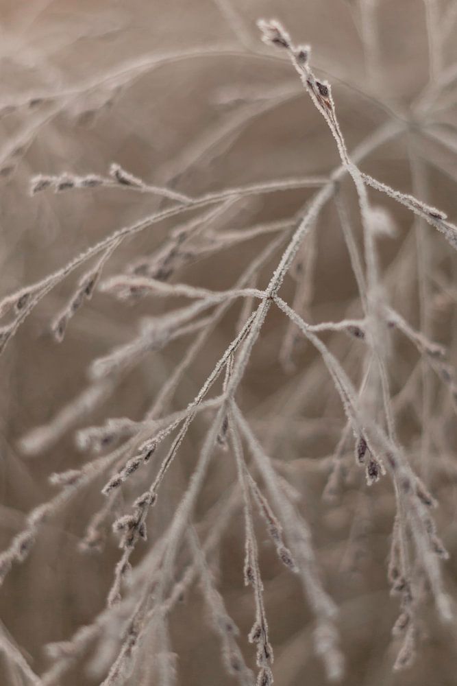 Gräser in der Natur oder im Garten mit einem Hauch von Frost, wehend in der Sonne. Eine weiche Art von Gras.
