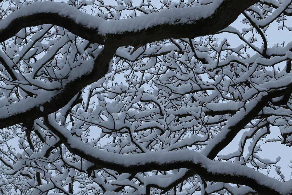 Eine schöne grafische Darstellung eines schneebedeckten Baumes. Viel Tiefe.