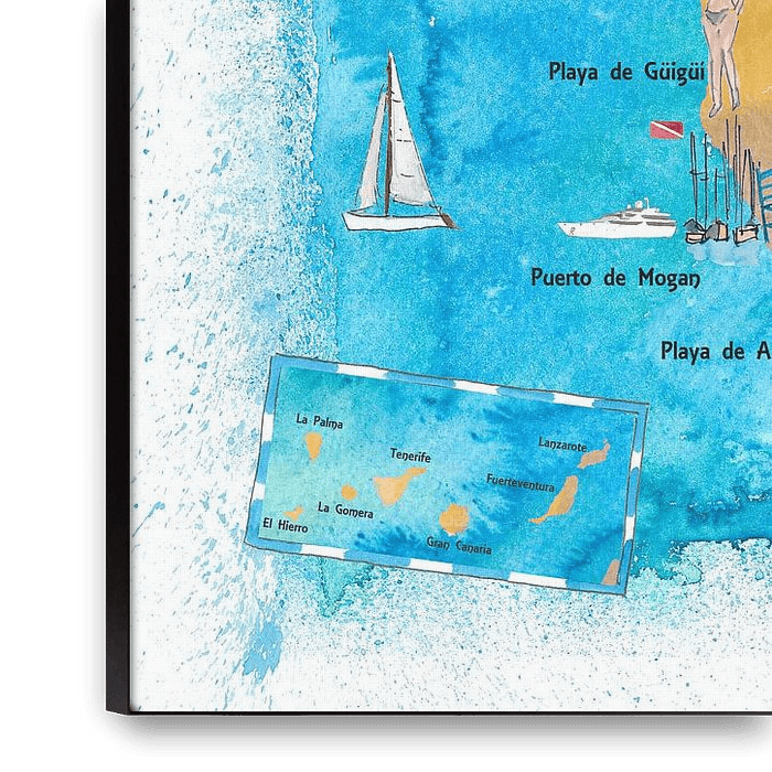 Gran Canarias Spanien illustrierte Karte mit Sehenswürdigkeiten und Highlights