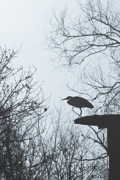 Über „Graureiher Silhouette im Winter“ von Imladris Images