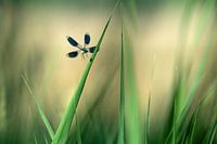 Bestelle das Foto Große Pechlibelle landet im Schilf von Karin de Jonge als Reproduktion auf Leinwand, Alu-Dibond, als Poster, Fototapete oder Acrylglasbild.