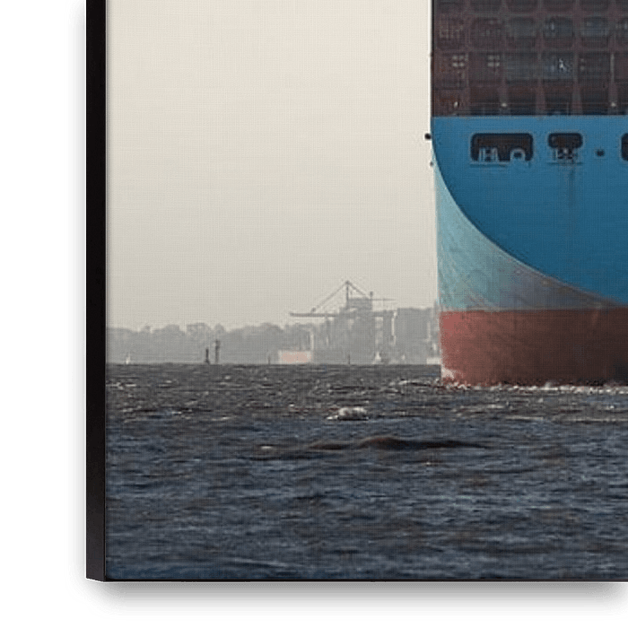 Großes Containerschiff verlässt am frühen Abend den Hamburger Hafen