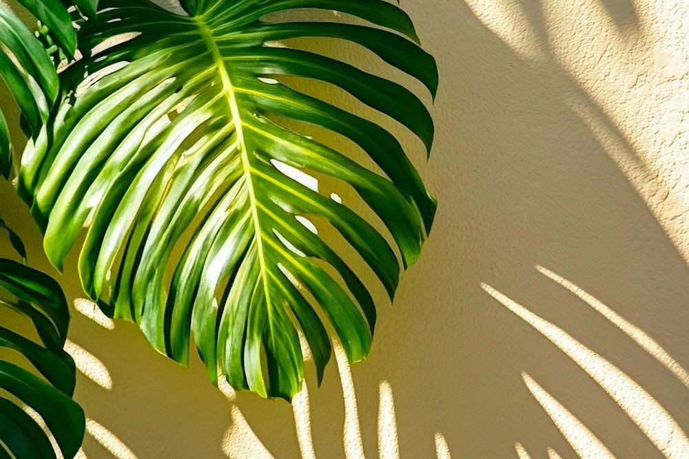 Sanfte Grüntöne und faszinierende Schatten verleihen diesem Artwork eine lebendige Atmosphäre. Die großen, glänzenden Blätter strahlen Natürlichkeit aus und schaffen eine entspannte Umgebung. Perfekt für das Wohnzimmer oder das Home Office, um eine ruhige, einladende Stimmung zu fördern und einen Hauch von tropischer Frische zu vermitteln.