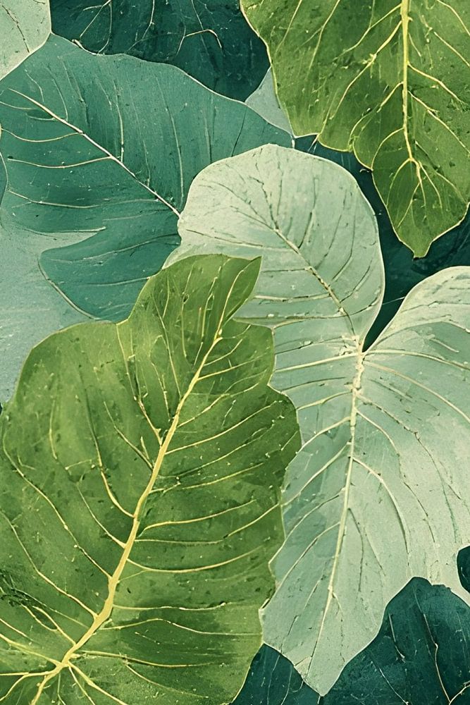 Ein üppiges, botanisches Muster, das eine Vielzahl von grünen Blättern zeigt. Das Kunstwerk verwendet einen reichen, strukturierten Stil, der das Gefühl eines dichten, lebhaften Dschungels vermittelt. Die verschiedenen Grüntöne, von hellem Minzgrün bis zu tiefem Waldgrün, bilden eine vielschichtige und dynamische Komposition. Die natürlichen Unvollkommenheiten und organischen Formen der Blätter sind wunderschön eingefangen und machen dieses Kunstwerk zu einer idealen Wahl für jeden, der ein Gefühl von Natur und Ruhe in seinen Raum bringen möchte.