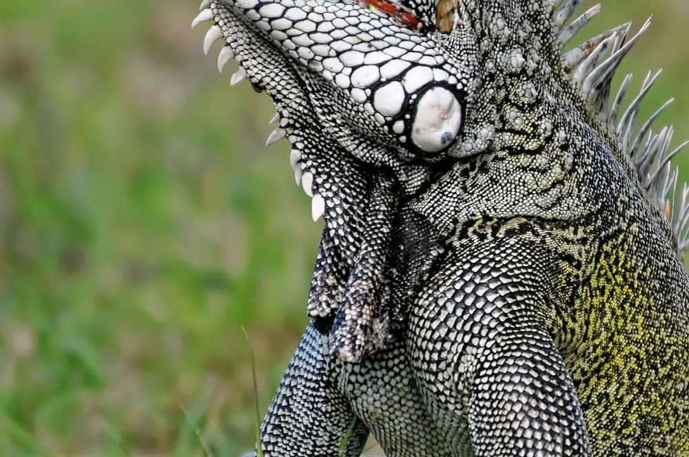 Grüne Leguane sind sofort an ihrer Größe zu erkennen. Mit einer Länge von bis zu zwei Metern gehören sie zu den größten Leguanen der Welt. Sie haben auch eine Kehlkopffahne, ein Stück fleischige Haut unterhalb der Kehle. Sie nutzen dies, um andere Männchen abzuschrecken oder Weibchen zu verführen. Sie haben auch eine grüne Farbe, die sich je nach Stimmung, Gesundheit oder Temperatur ändern kann.