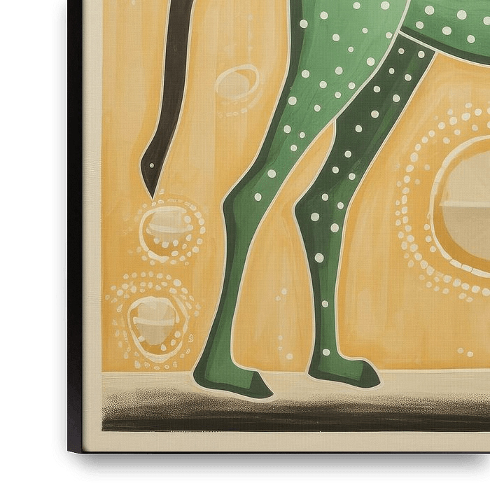 Bestelle diese Illustration Grünes Kamel in der Volkskunst von Aloke Design als Reproduktion auf Leinwand, Alu-Dibond, als Poster, Fototapete oder Acrylglasbild.