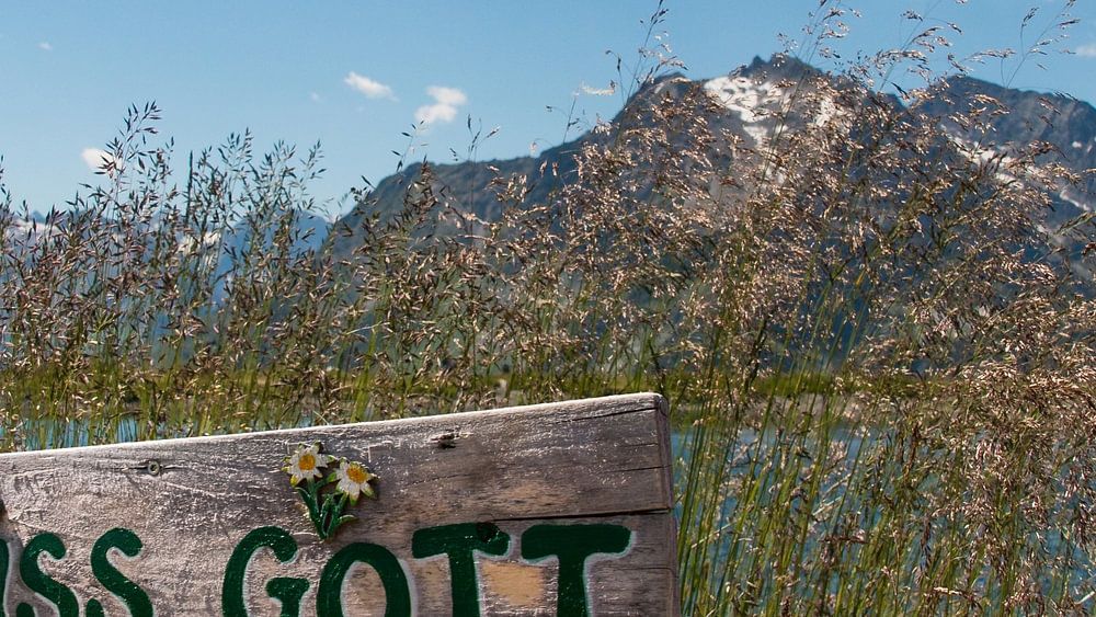 Grüß Gott ist ein typisch bayerischer, süddeutscher, südtiroler und österreichischer Gruß, der aber auch in Donauschwaben verwendet wird. Er ist eine Verkürzung von Grüße dich Gott, was so viel bedeutet wie "Gott grüßt dich". Der Gruß "Grüß Gott" ist religiös, was darauf zurückzuführen ist, dass Bayern und Österreich eine überwiegend katholische Bevölkerung haben. Hier sehen Sie eine Aussicht in der Nähe von Mayrhofen, Österreich.