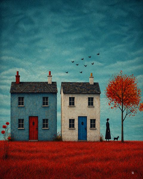 Zwei stille Häuser, deren Türen sich vor dem gestrigen Tag verschlossen haben. Eine Frau schreitet langsam durch ein Feld, das sich erinnert. Vögel verschwinden am Himmel – und etwas Unausgesprochenes bleibt zurück.