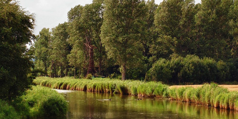 Die Aufnahme im Panorama-Format wurde leicht nachbearbeitet. Die Bäume sind im Fluss als Spiegelung zu erkennen.
