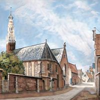 Bild wurde digital erstellt, ausgeführt in einer Aquarellatmosphäre von Haarlem nach einem alten Druck der Bakenesserkerk