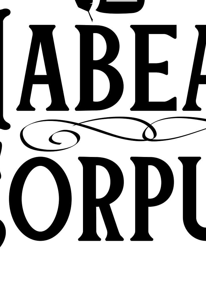 Dieses minimalistische Schwarz-Weiß-Motiv zeigt den Schriftzug „Habeas Corpus“ in einer eleganten, klassischen Typografie. Über dem Text sind eine Schreibfeder, ein Dokument und ein stilisierter Pfeil als Symbole für Recht und Gerechtigkeit abgebildet. Darunter befindet sich die Übersetzung „You Shall Have the Body“, die den rechtlichen Grundsatz des Habeas-Corpus-Prinzips unterstreicht. Das Design ist von juristischen und historischen Elementen inspiriert und vermittelt eine kraftvolle Botschaft über persönliche Freiheit und Rechtsstaatlichkeit.