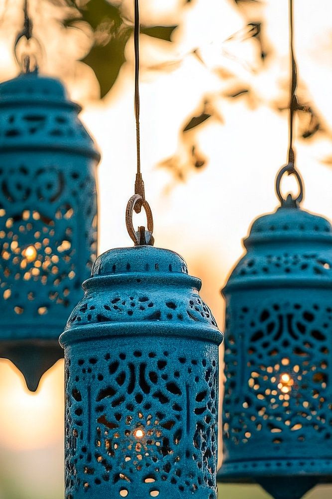Die filigranen, türkisen Laternen vermitteln ein Gefühl von mediterraner Gelassenheit und schaffen mit ihrem kunstvollen Muster ein sanftes Schattenspiel. Ideal für den Außenbereich oder die gemütliche Küche, verzaubern sie jeden Raum mit einem Hauch von Urlaub und wohltuender Atmosphäre, während das Licht sanft durch die Öffnungen strahlt.