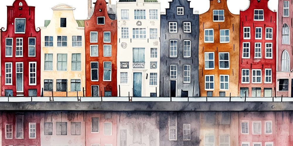 Bestelle das digitale Kunst Bild Häuser am Kanal von Bert Nijholt als Reproduktion auf Leinwand, Alu-Dibond, als Poster, Fototapete oder Acrylglasbild.