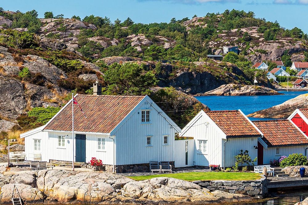 Häuser auf der Schäreninsel Monsøya in Norwegen.