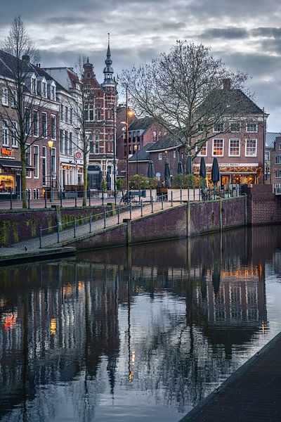 Foto vom Hafen in Breda mit dem Botanist (de Trapkes) am frühen Abend. Spiegelung im ruhigen Wasser.
