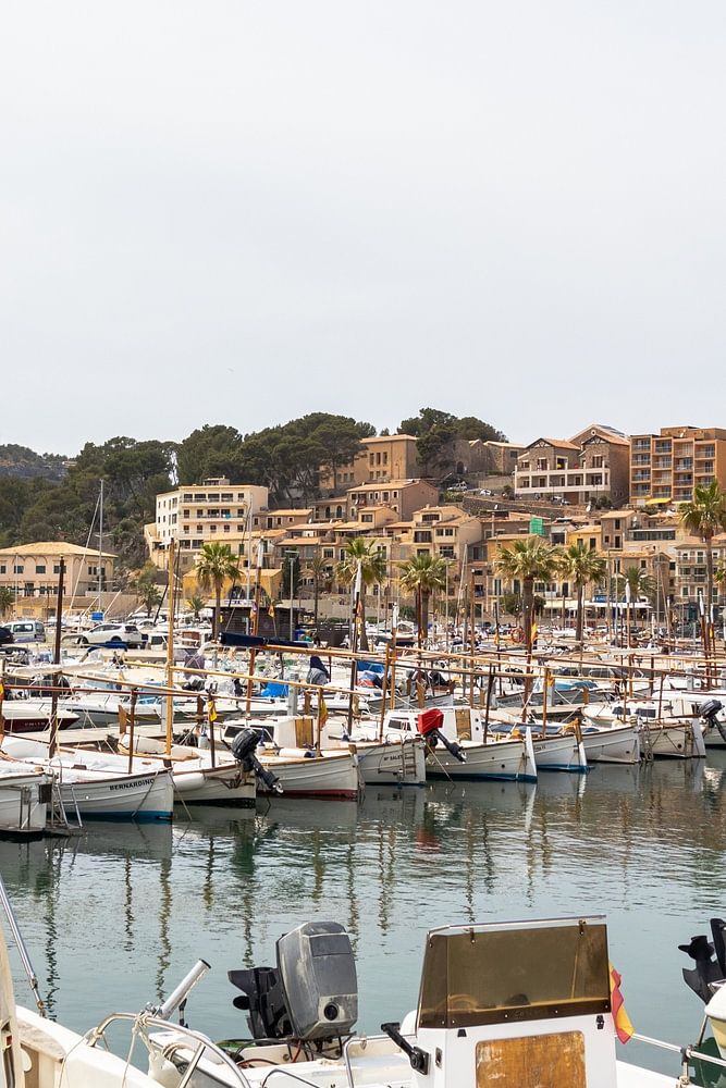 Port de Sollér, vom Hafen aus fotografiert. Die vielen Boote geben dem Foto eine schöne Tiefenwirkung.