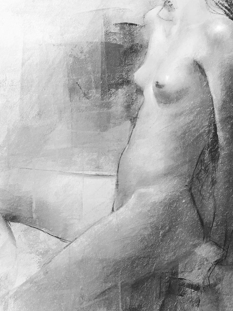 Digital von Hand gezeichnete Aktstudie. Verwendete Mal-Software: Rebelle 6 Pro - Graphit und Kohle auf Papier.