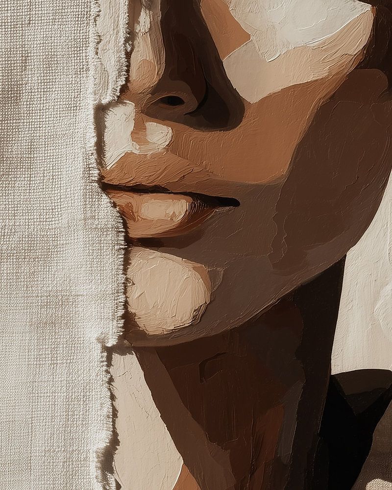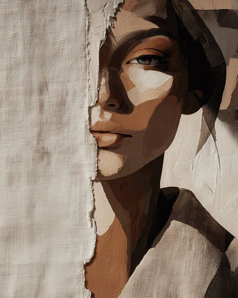 „Half Revealed“ fängt einen faszinierenden Moment zwischen Sichtbarem und Verborgenem ein, in dem Identität nicht vollständig preisgegeben wird, sondern gerade in dem, was unausgesprochen bleibt, ihre Kraft findet. Das Porträt zeigt ein Gesicht, das hinter einer rauen, leinenartigen Textur nur teilweise enthüllt wird. Diese Trennung ist…