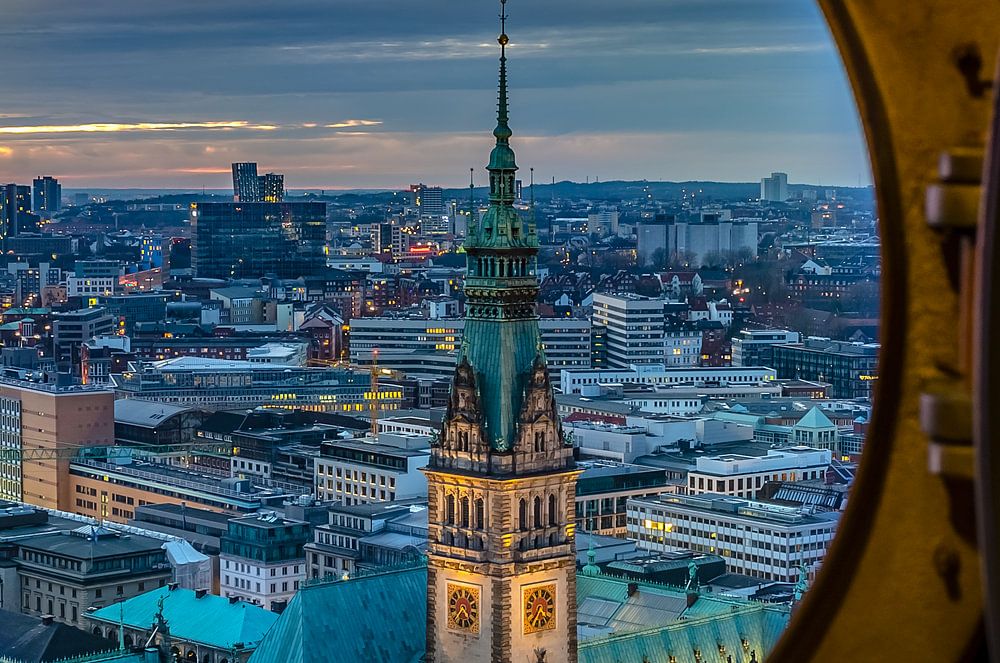 Hamburg von oben. Ausblick von St. Katharinen in Richtung Rathaus.