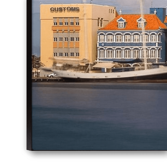 Bestelle dieses moderne Wandbild Handelskade in Willemstad Panorama von Edwin Mooijaart als Reproduktion auf Leinwand, Alu-Dibond, als Poster, Fototapete oder Acrylglasbild.