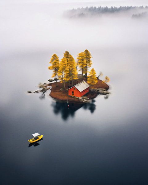 Bestelle dieses Landschafts-Wandbild Haus am See von fernlichtsicht als Reproduktion auf Leinwand, Alu-Dibond, als Poster, Fototapete oder Acrylglasbild.