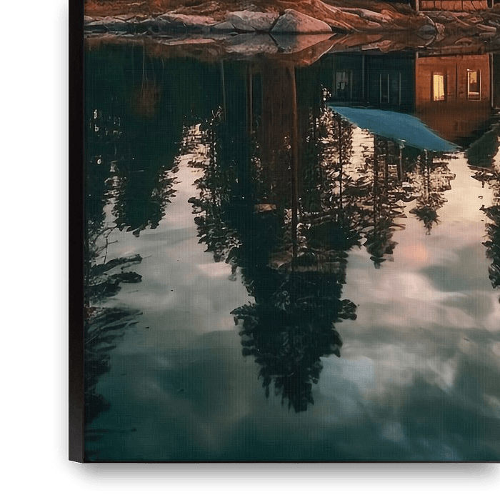 Bestelle das Foto Haus am See von haroulita als Reproduktion auf Leinwand, Alu-Dibond, als Poster, Fototapete oder Acrylglasbild.