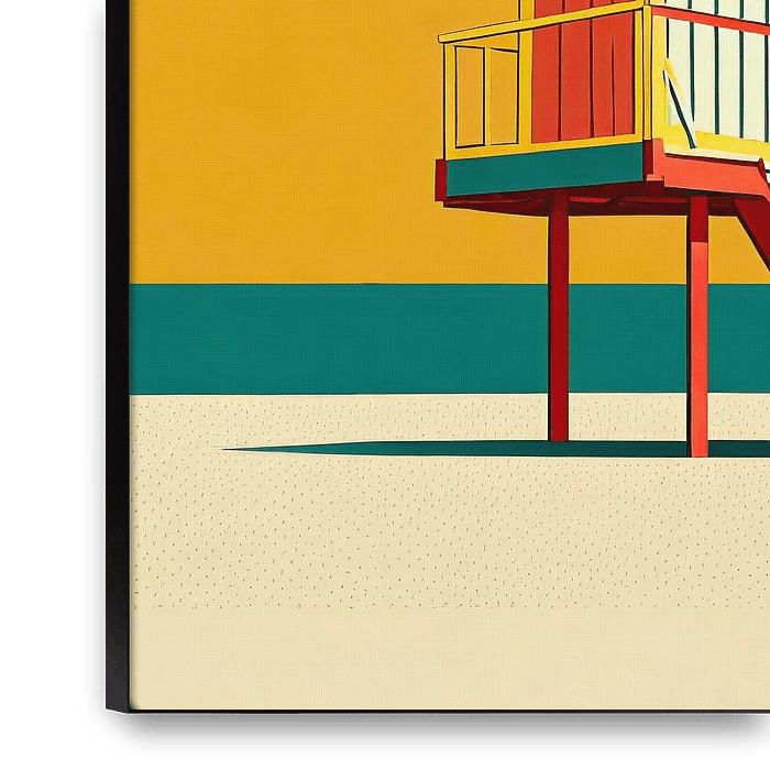 Minimalistisches Rettungsschwimmerhäuschen im Stil der 1950er Jahre. Farbenfroh und einfach gehalten.