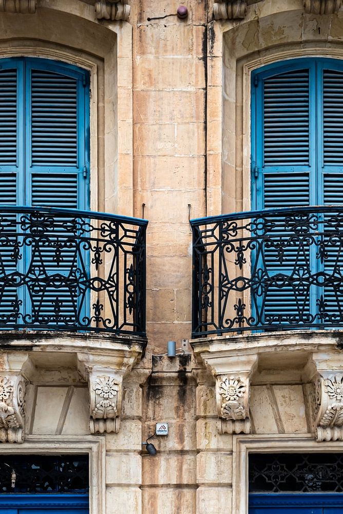 Hausfassade mit Eingangstür und Balkon in Valletta Malta