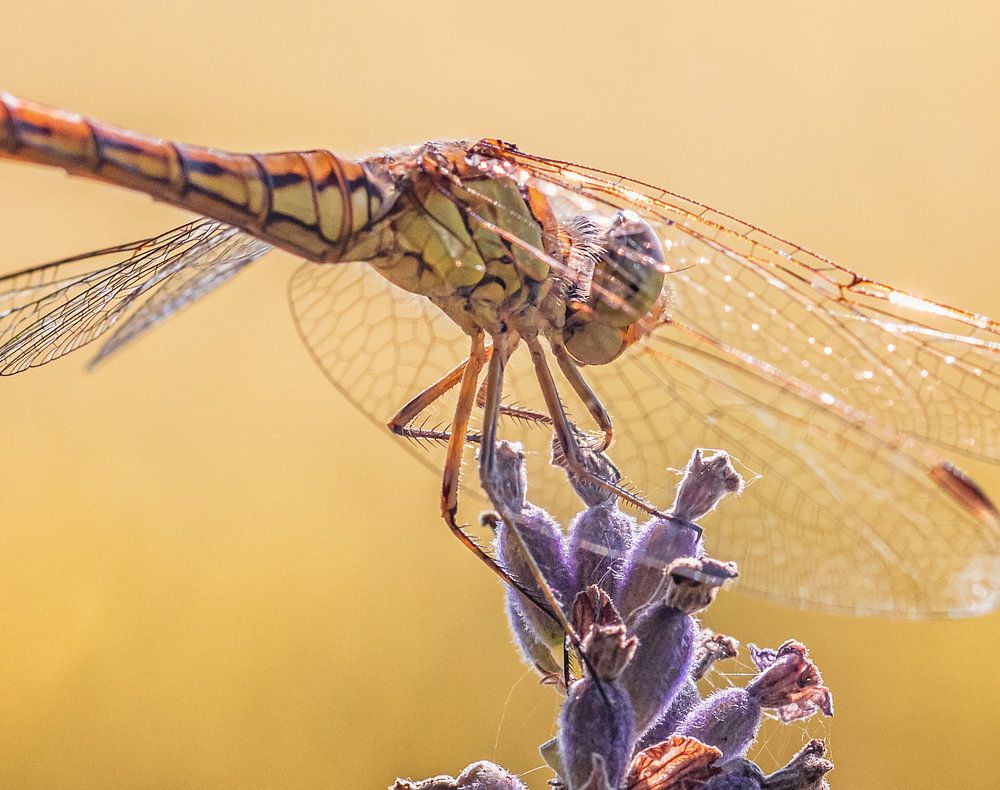 Libelle auf Lavendelstiel. ländliche Atmosphäre