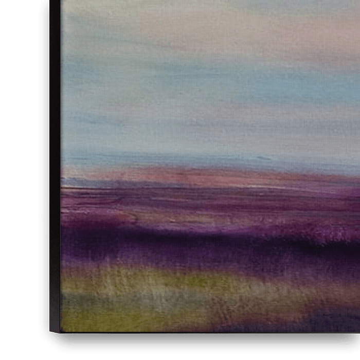 Bestelle dieses abstrakte Wandbild Heideland - rosa Wolken von Annette Schmucker als Reproduktion auf Leinwand, Alu-Dibond, als Poster, Fototapete oder Acrylglasbild.