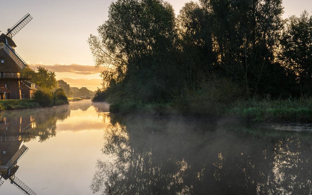 Sonnenaufgang an der Hengstforder Mühle, Ammerland in Niedersachsen, Deutschland